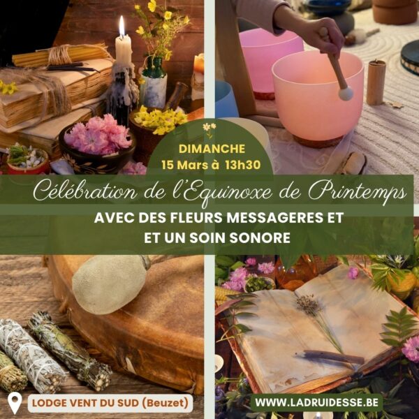 Vivez une après-midi sacrée et vibrante et un moment de reconnexion à soi, à sa lumière intérieure, à la nature et à sa terre par l’intermédiaire des fleurs et des végétaux naturels et des énergies de l’équinoxe de printemps. C’est l’occasion de célébrer le renouveau dans nos vies et la saison claire. Fêtons ce passage dans la joie tous ensemble. Fêtons l’équiilibre jour et nuit pour plus d’équilibre dans nos vies..